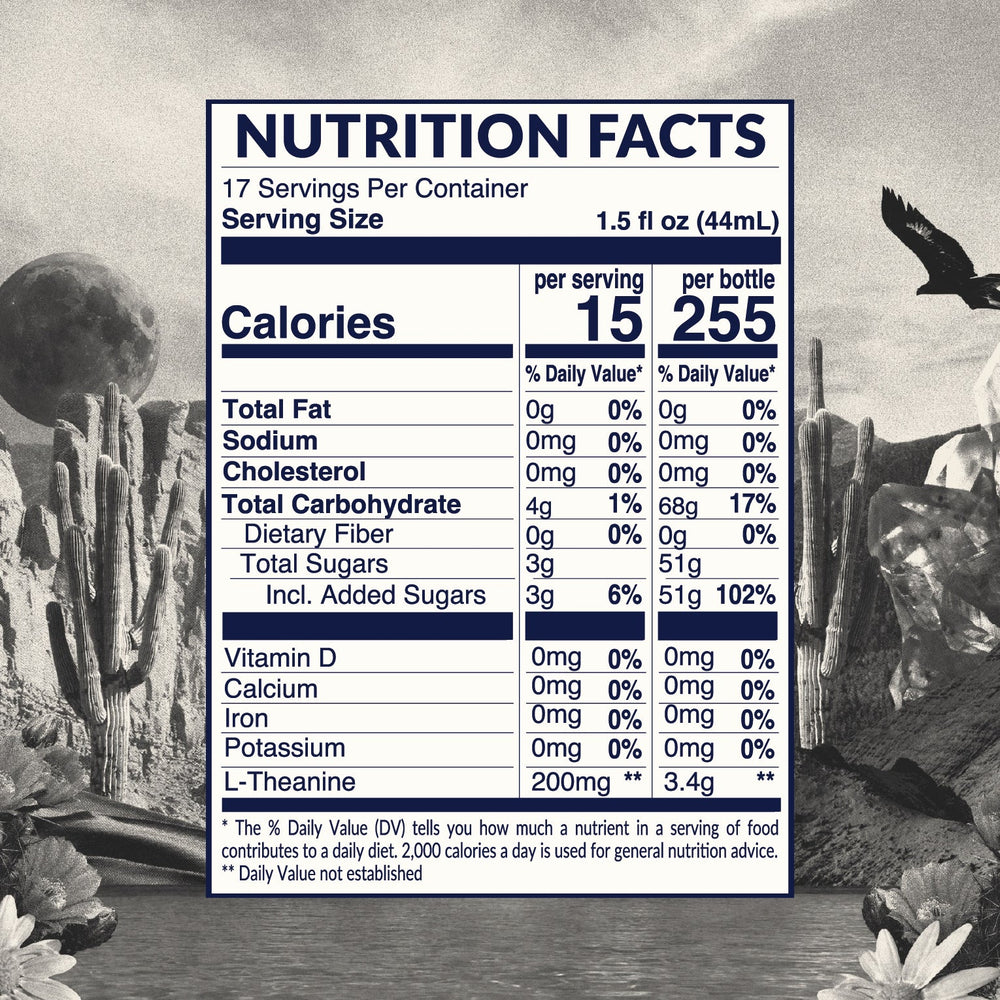 • 10mg THC, 2mg CBD, 2mg CBG, 200mg L-Theanine per shot (1.5oz)