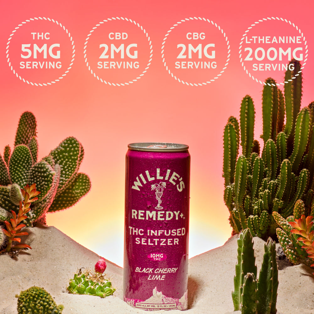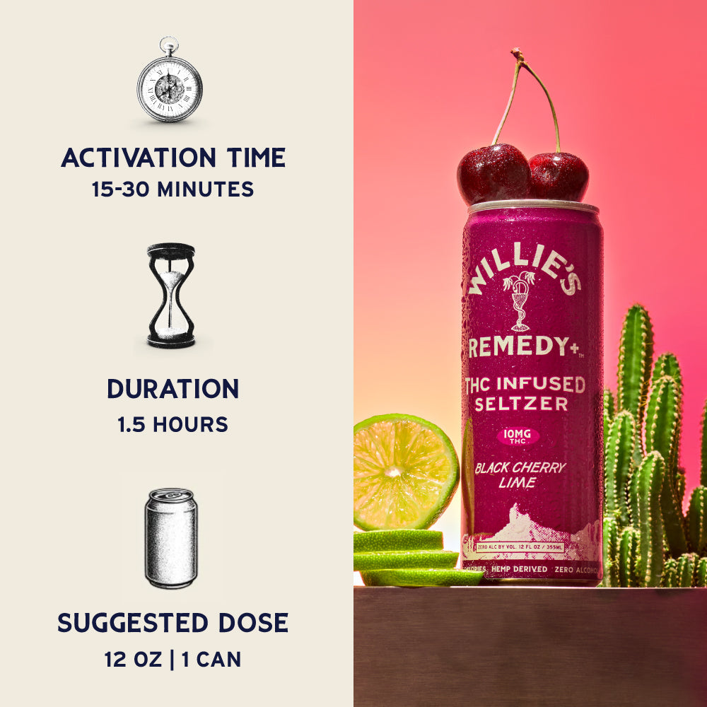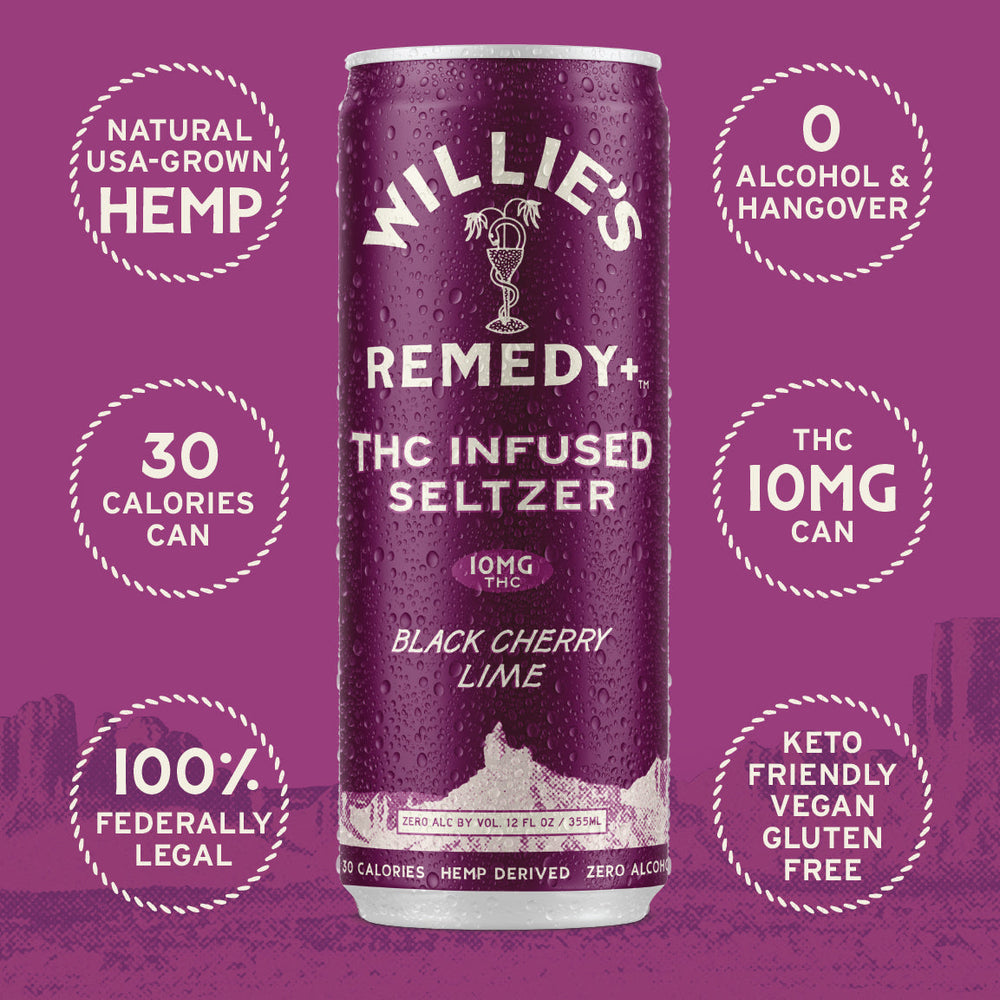 Willie's Remedy+ 10mg THC Infused Seltzer - Black Cherry Lime (12x4) 48cans