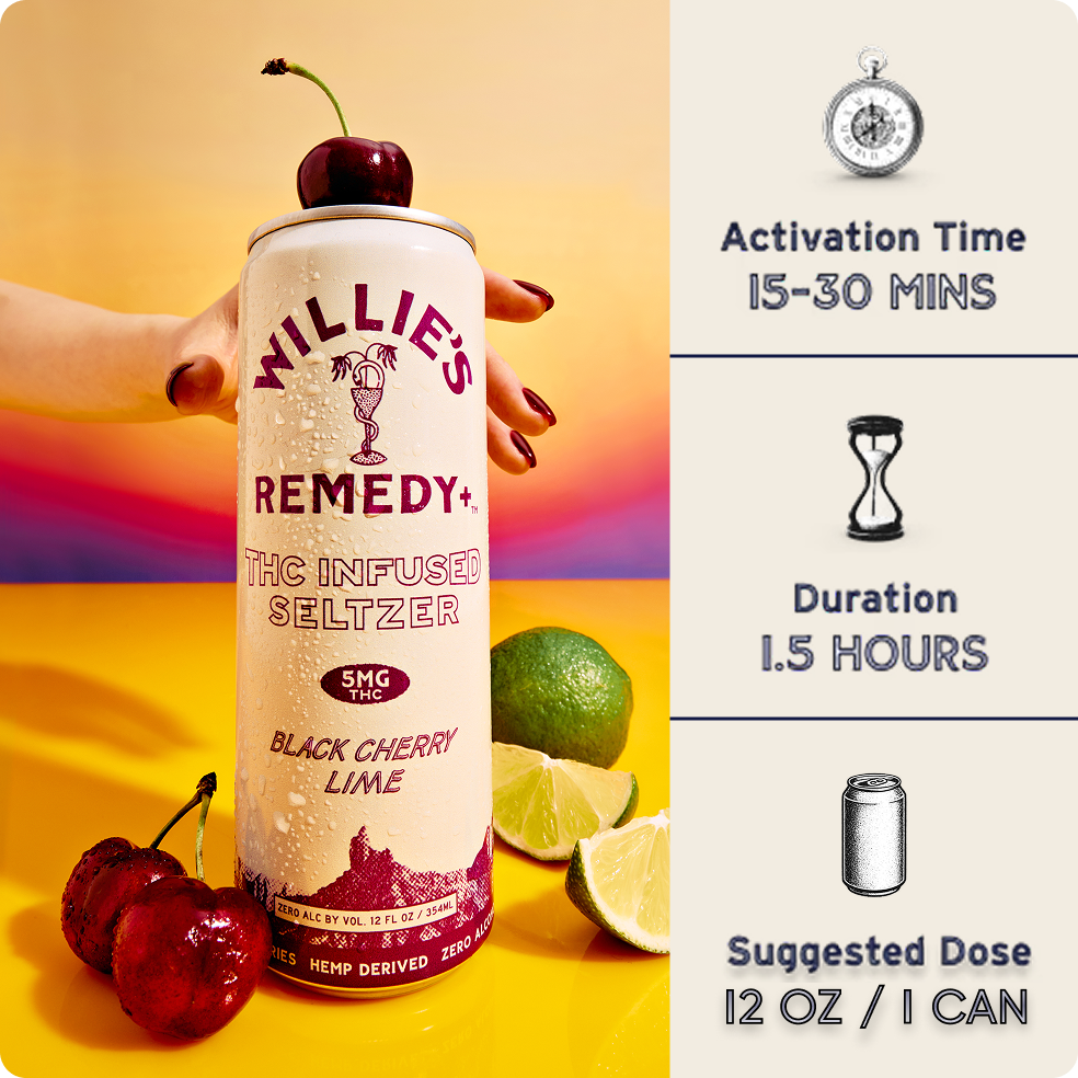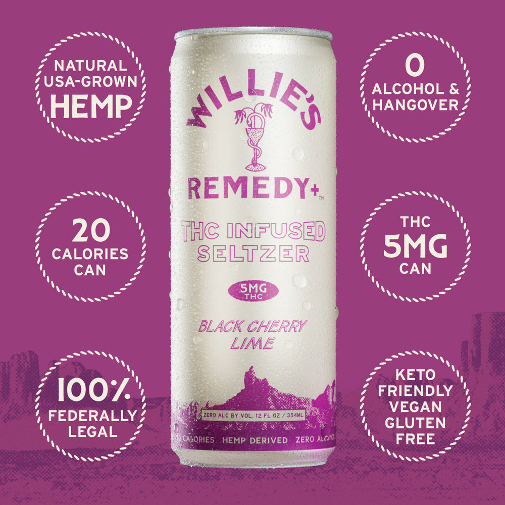 Willie's Remedy+ 5mg THC Infused Seltzer - Black Cherry Lime (12x4) 48cans