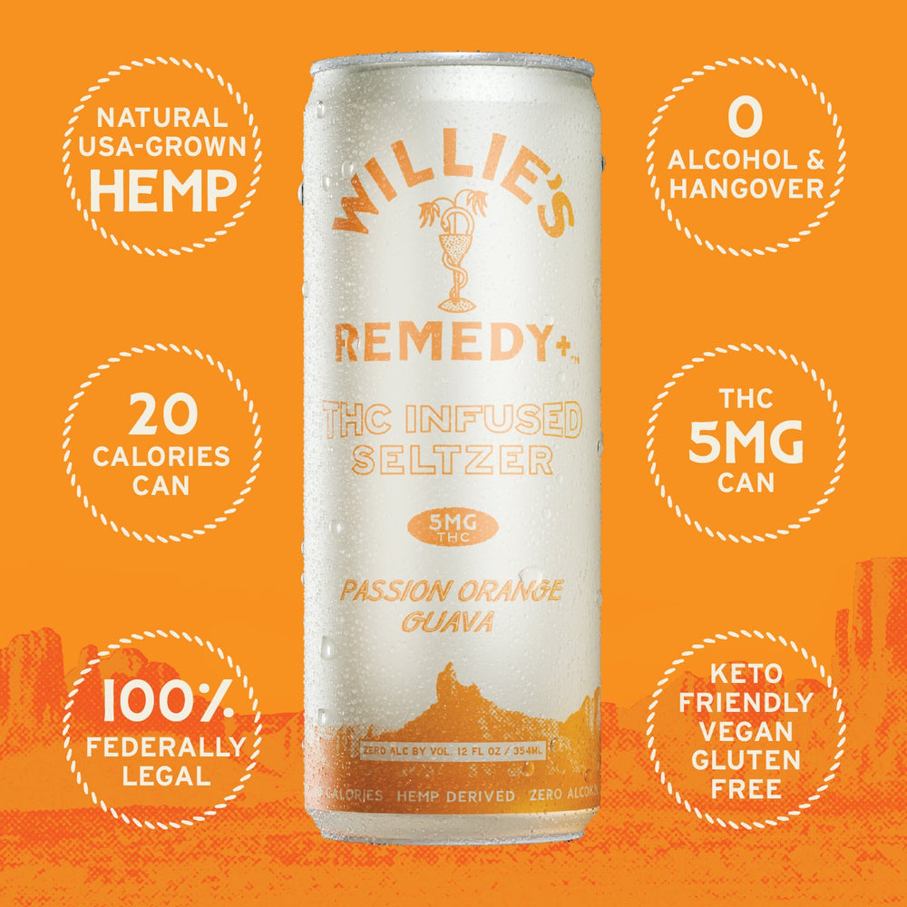 Willie's Remedy+ 5mg THC Infused Seltzer - Passion Orange Guava (12x4) 48cans